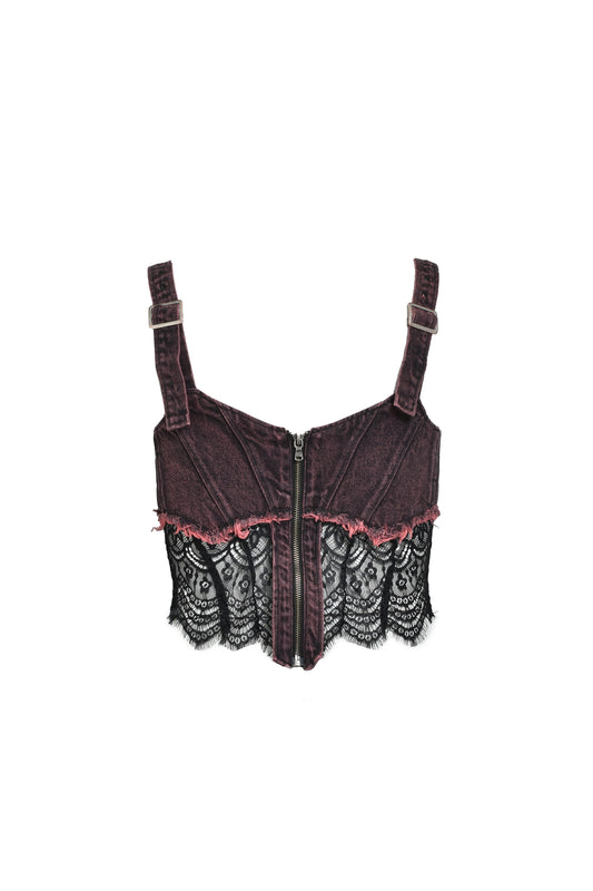 SOLD OUTDENIM LACE COMBI BUSTIER / PNK