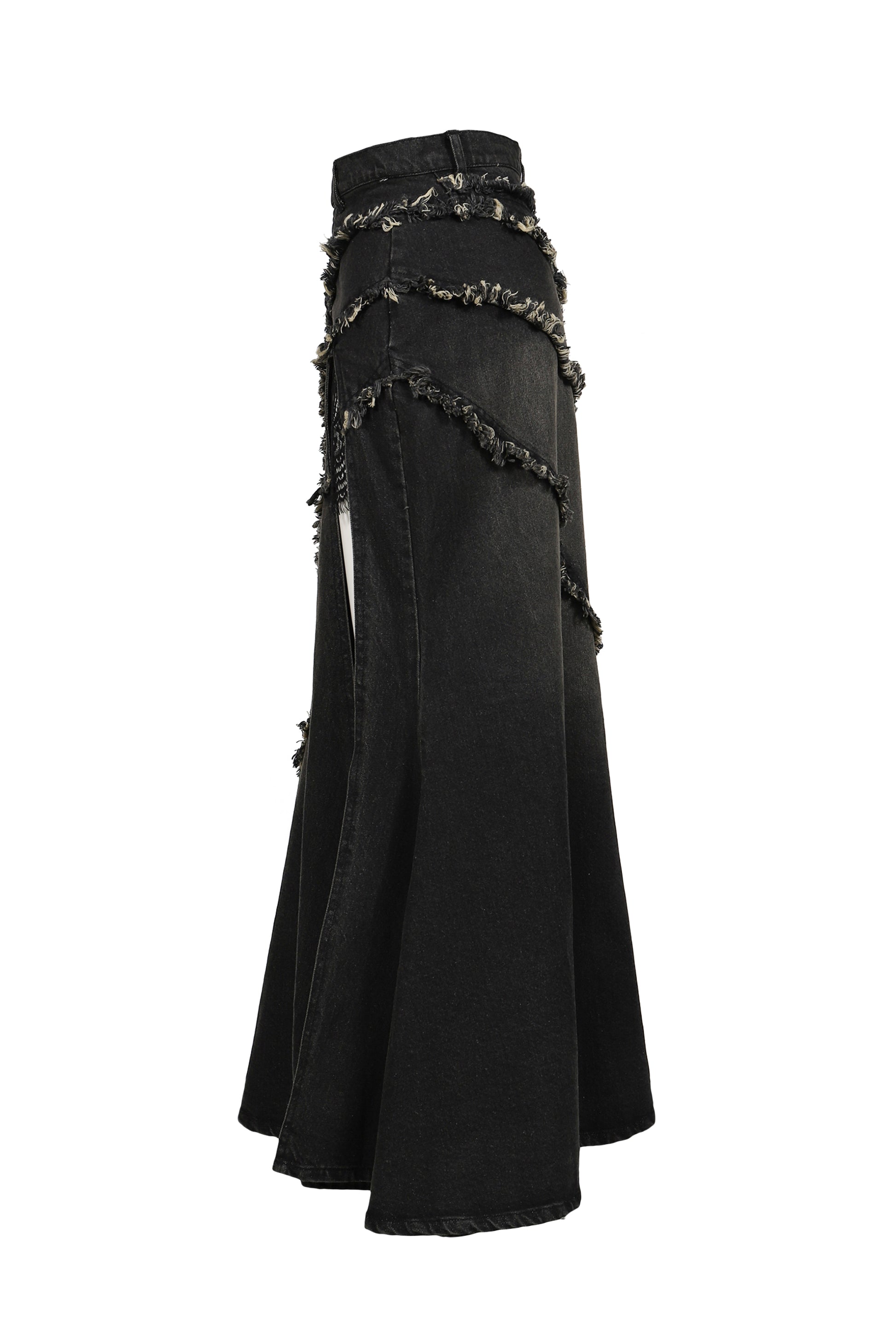 TIERED LACE DENIM SKIRT / BLK