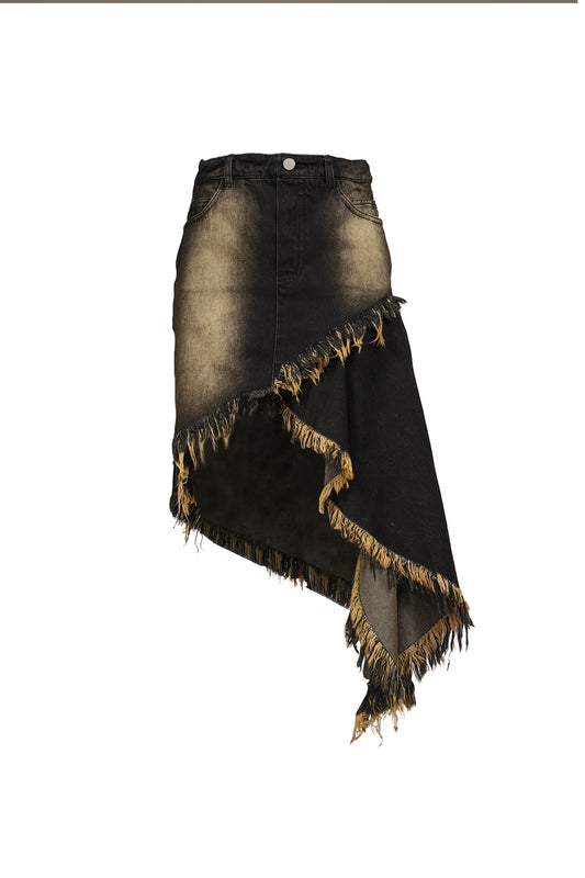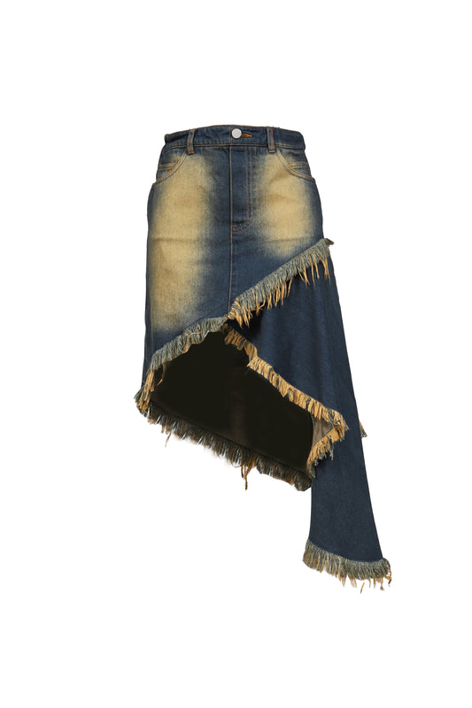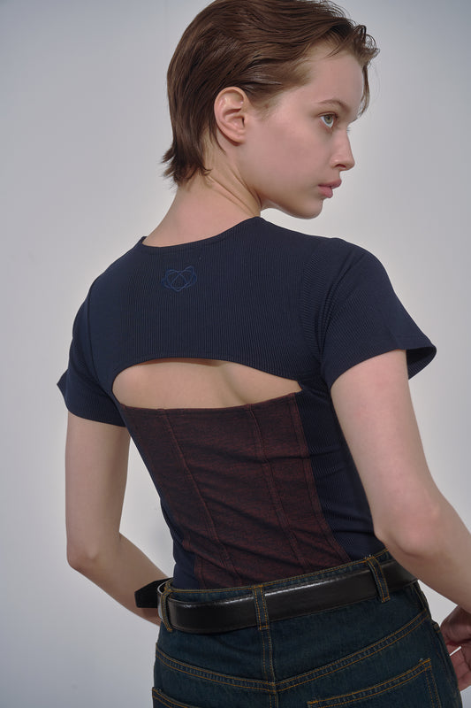 DENIM LACE COMBI T-SHIRT / ORANGE